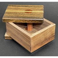 Boxy by László Molnár is a unique packing puzzle concept. You must pack the five simple pieces into a clever box with a rotating and connected top/bottom panel. Joined by a dowel, the top and bottom move together and therefore limit access to the interior. As the box fills with pieces, the movement of the lid is increasingly restricted. Despite multiple possible configurations, you can assemble only one in a particular order. Boxy is a fun, challenging puzzle. |