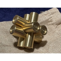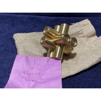 Brass Monkey Three. Just two rings engraved on the end of each piece differentiates it from Brass Monkey One (no rings), Brass Monkey Two (one ring) and Brass Monkey Four (a deeper central hole) which are both available in our store. This puzzle is a brand new design by Ali and Steve. Our second collaborative design. Like the first couple of puzzles, it weighs almost 800g (1.1 lbs). Each piece is 70mm long and has a diameter of 19mm. This is a puzzler's puzzle. Perfect for fooling those who think they have seen it before. It looks like a standard interlocking Burr. It isn't.