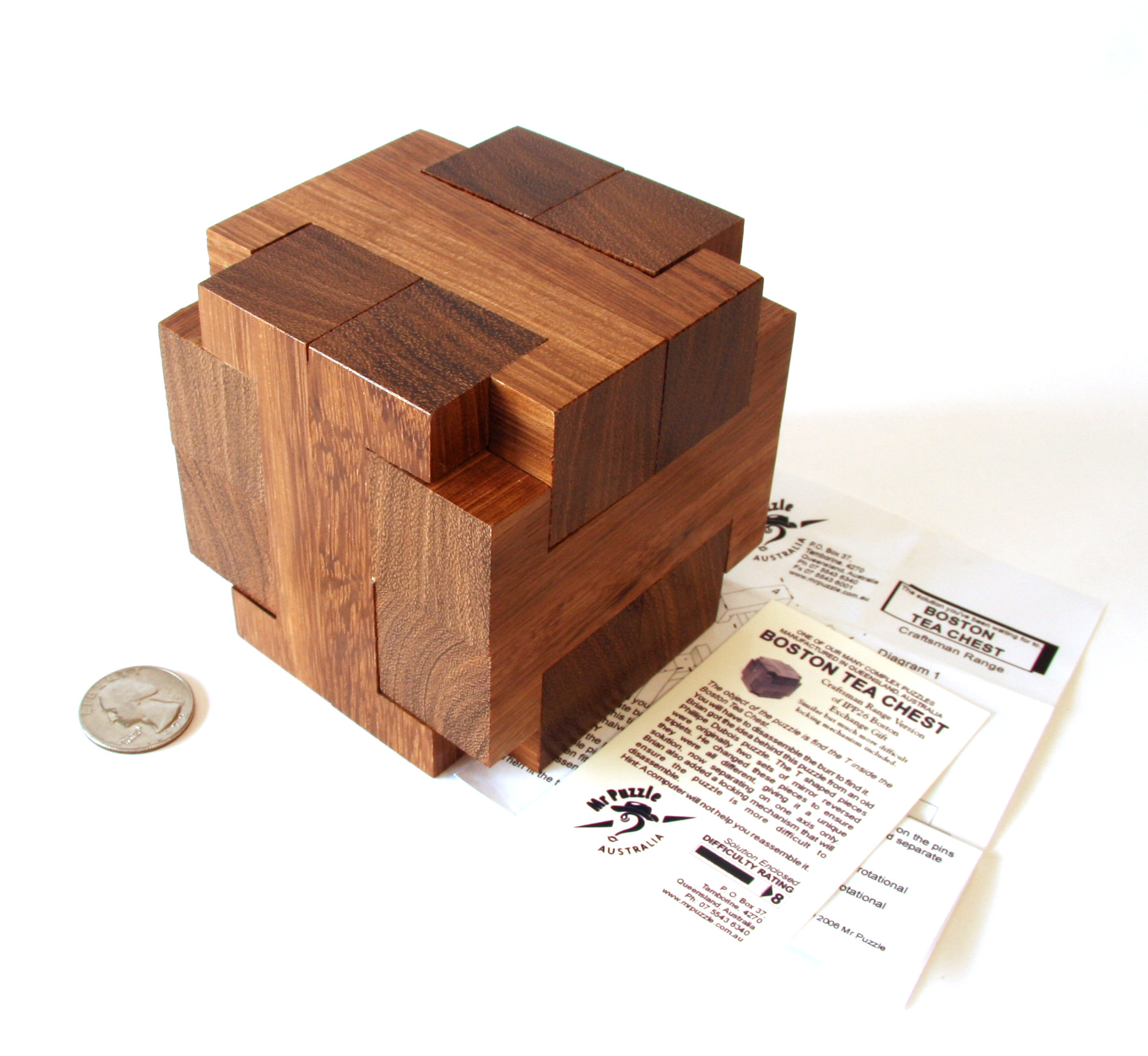 The puzzle is crafted from exotic Australian hardwoods.