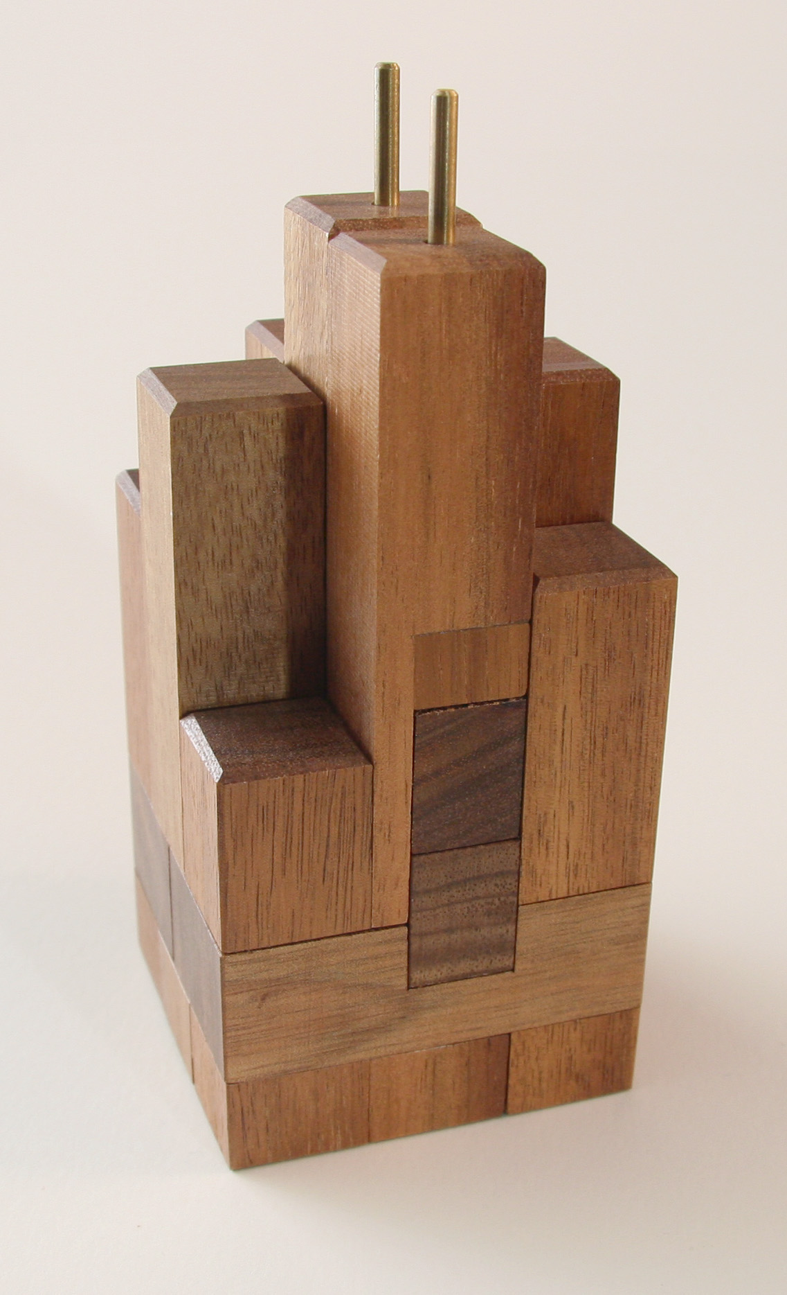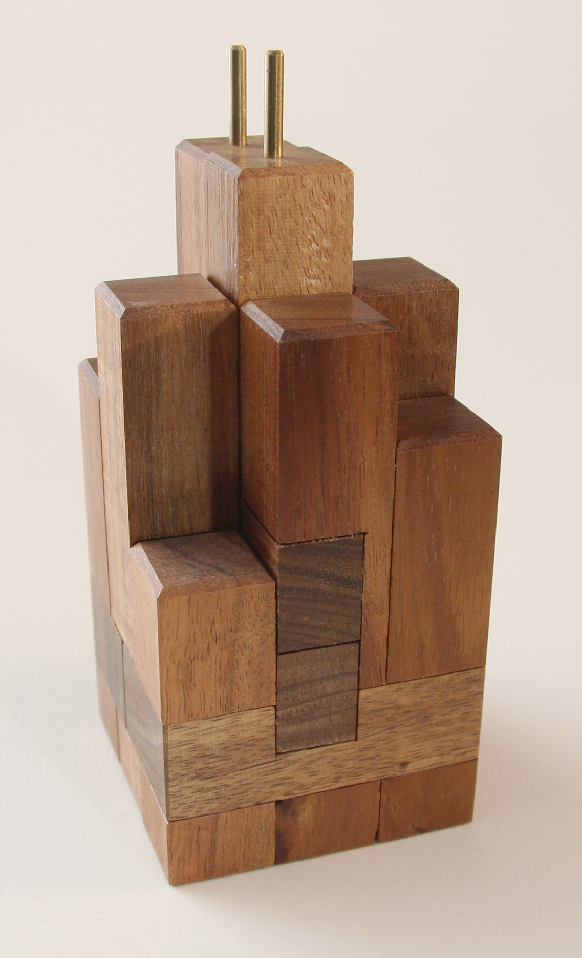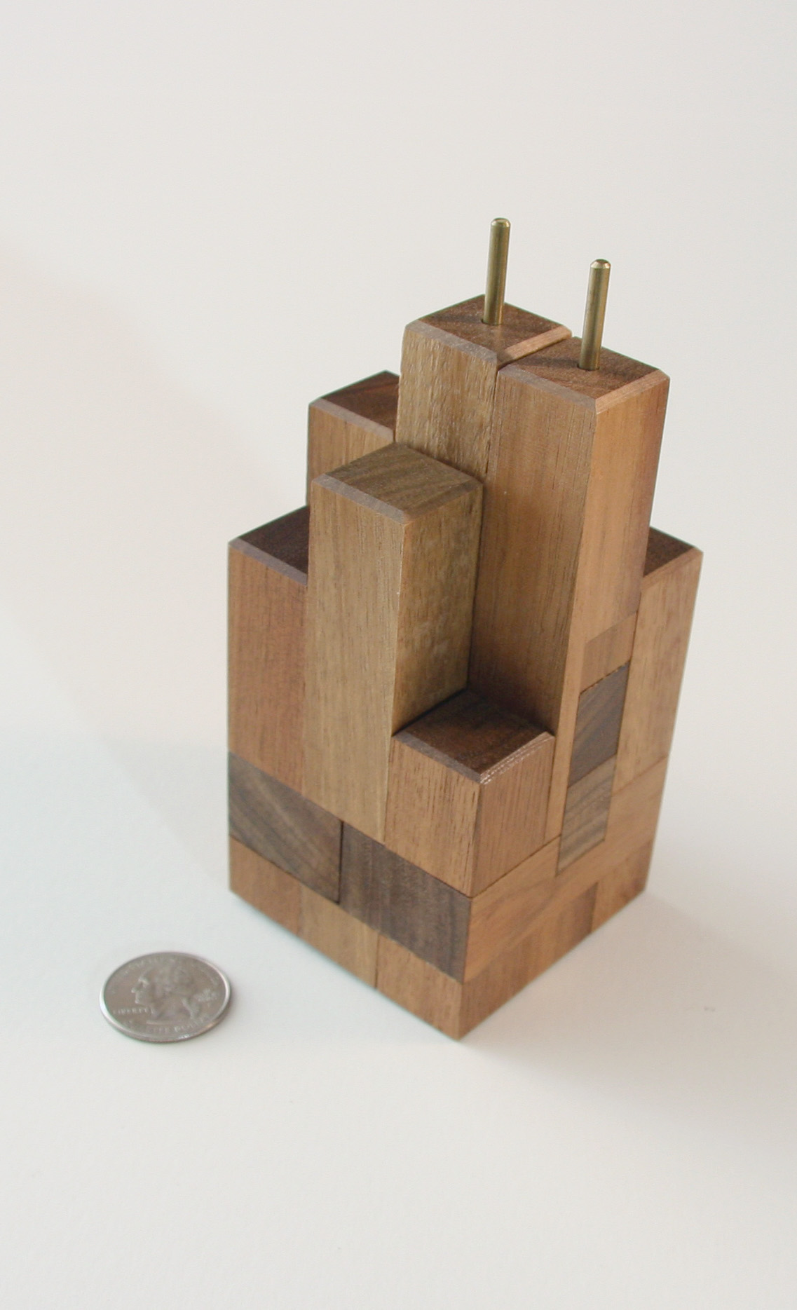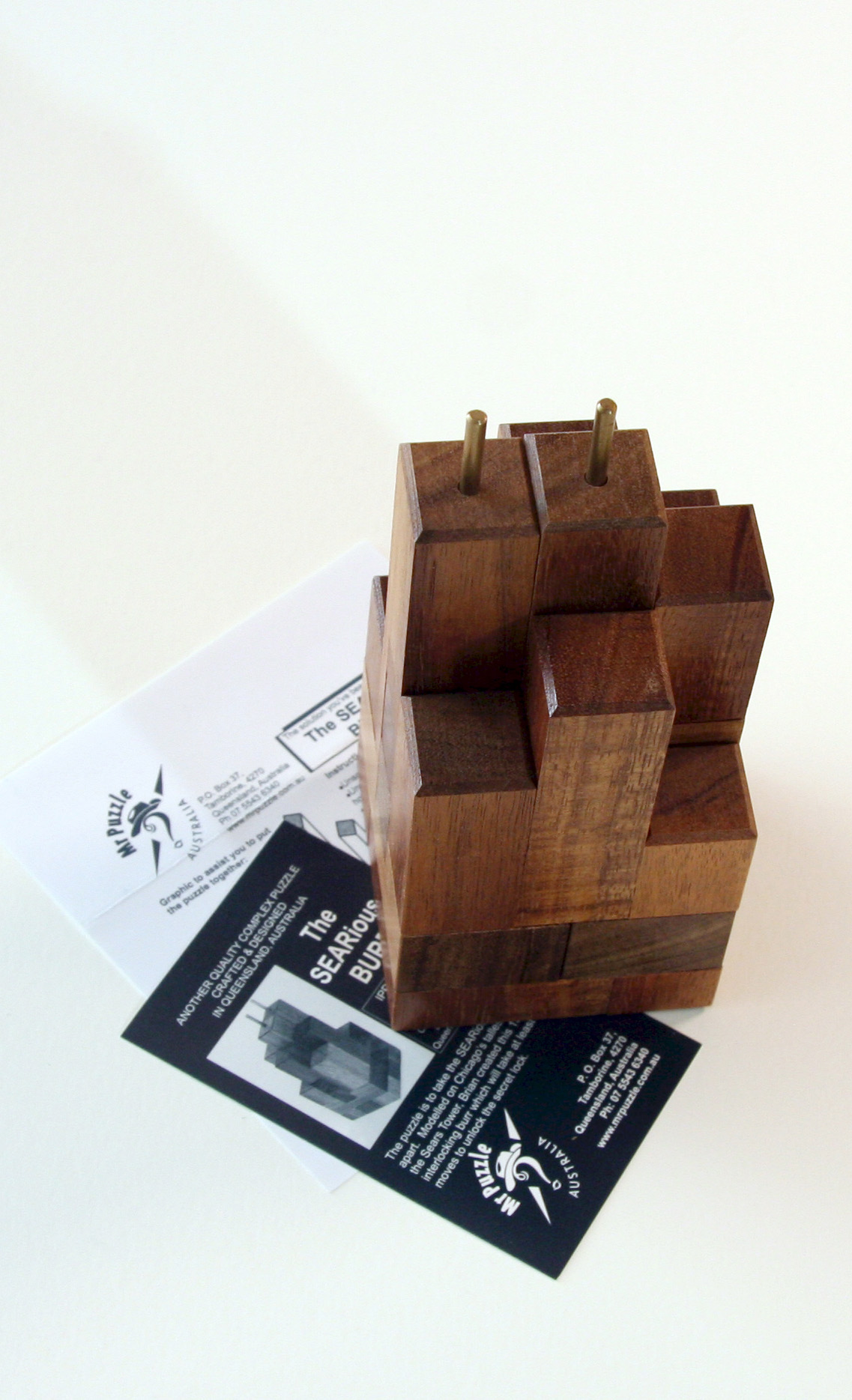 The puzzle is to take the SEARious burr apart. Modelled on Chicago’s tallest building, the Sears Tower, Brian created this 13 piece interlocking burr.