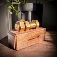 Most bolt puzzles have just one or two moves but Brian wanted to make a full-blown sequential discovery puzzle out of a bolt. In the end, he had to hand-make the bolt too! To celebrate 30 years of puzzle making Brian included a few well-disguised hints of puzzles past. But don’t think that means you’ll solve this one easily.