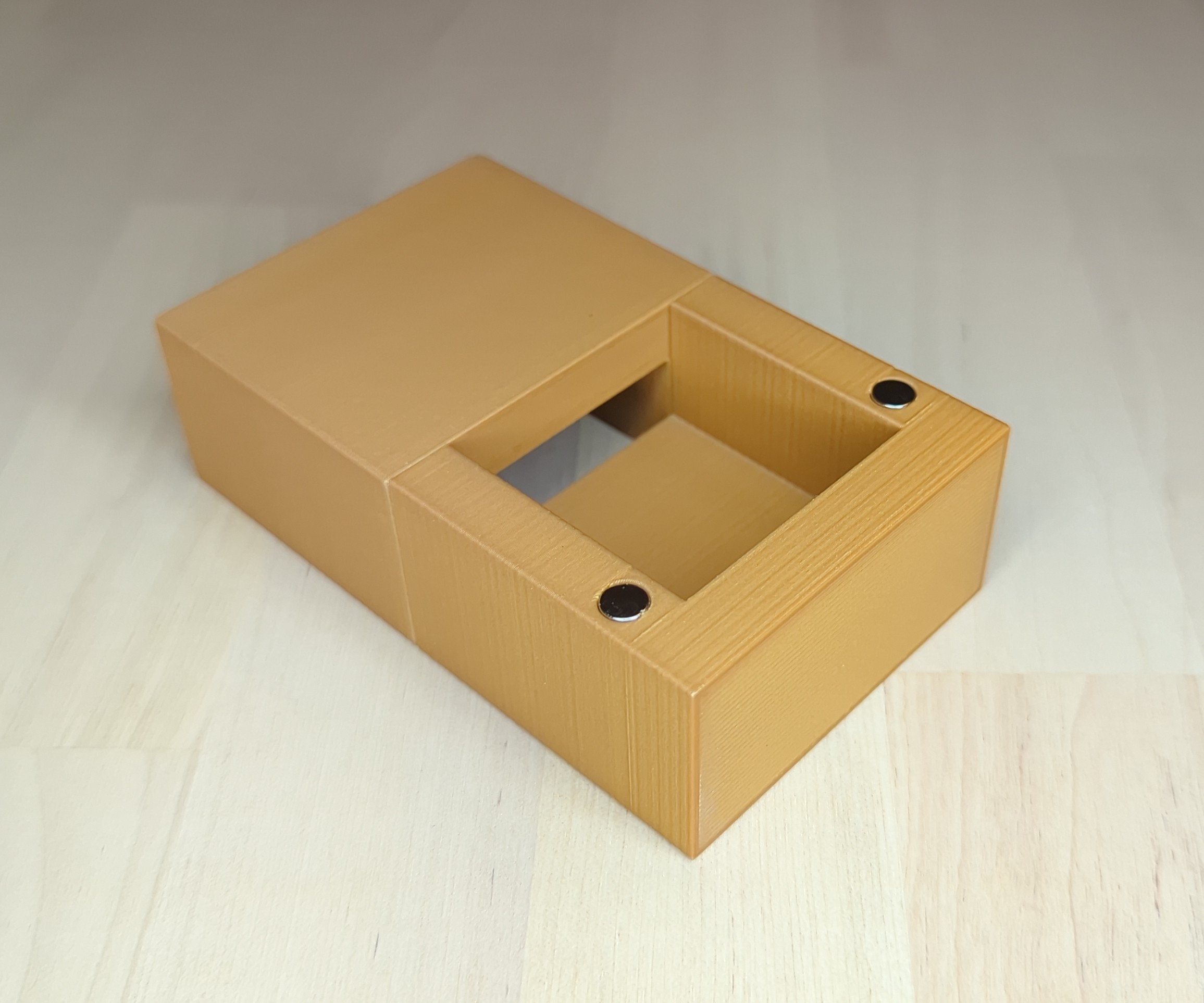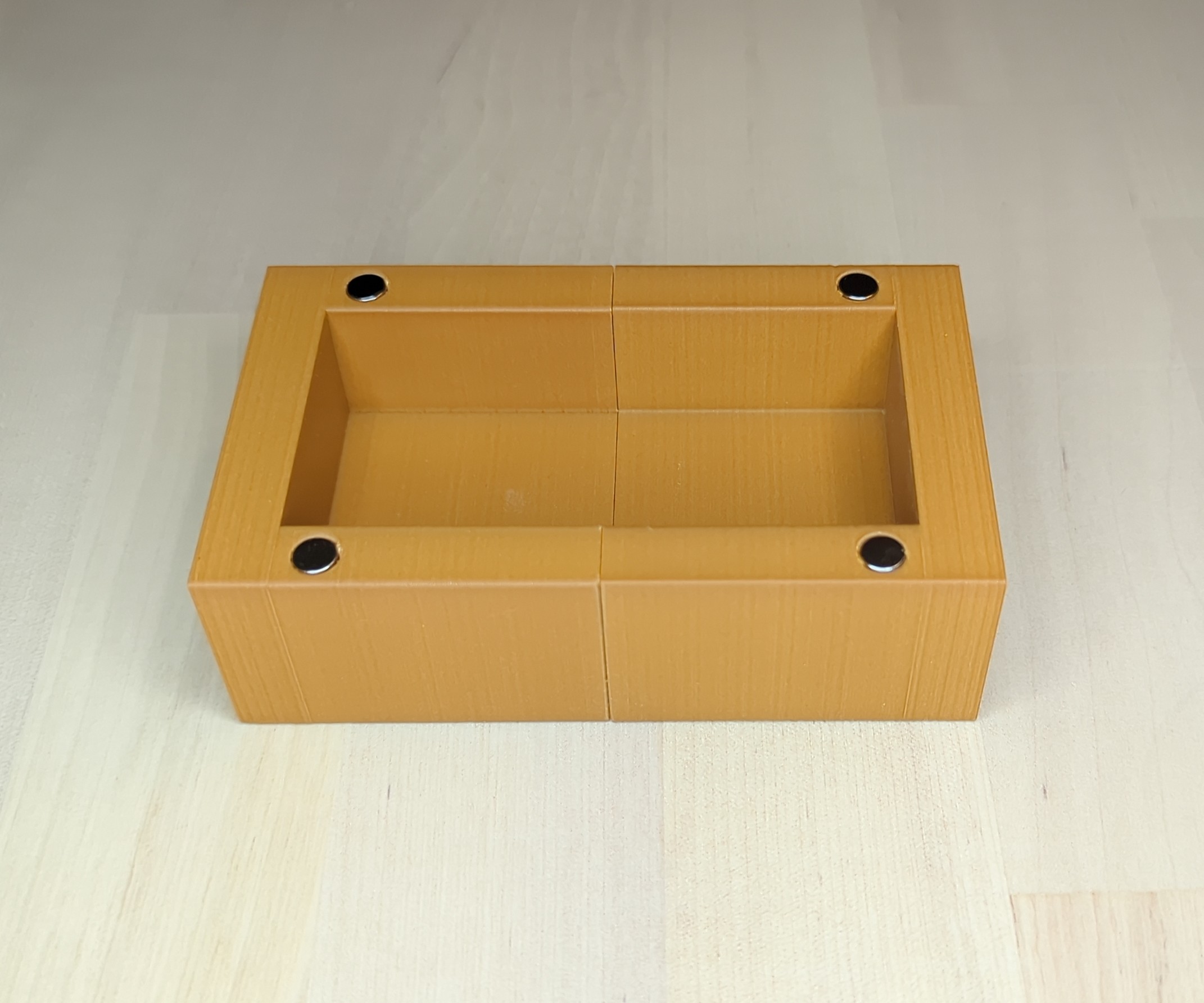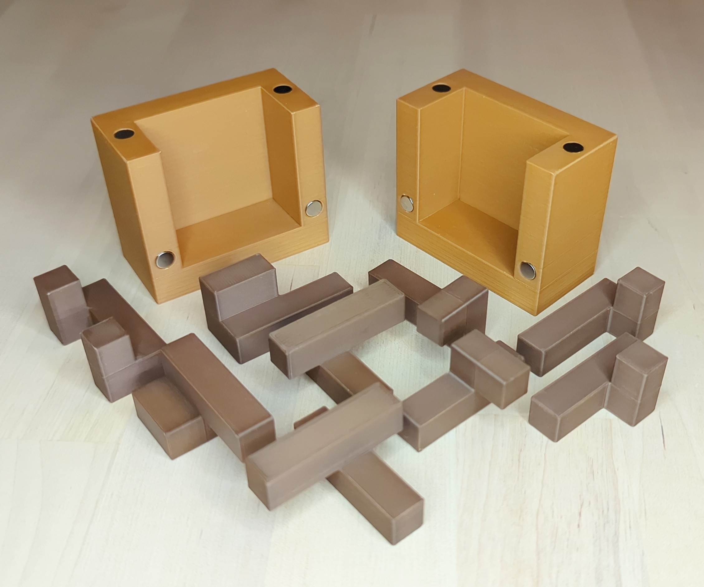 Broken Box is a brilliant puzzle. Its container isn't actually broken... it's divided into two parts and, thanks to a series of magnets, can be assembled in six different ways.