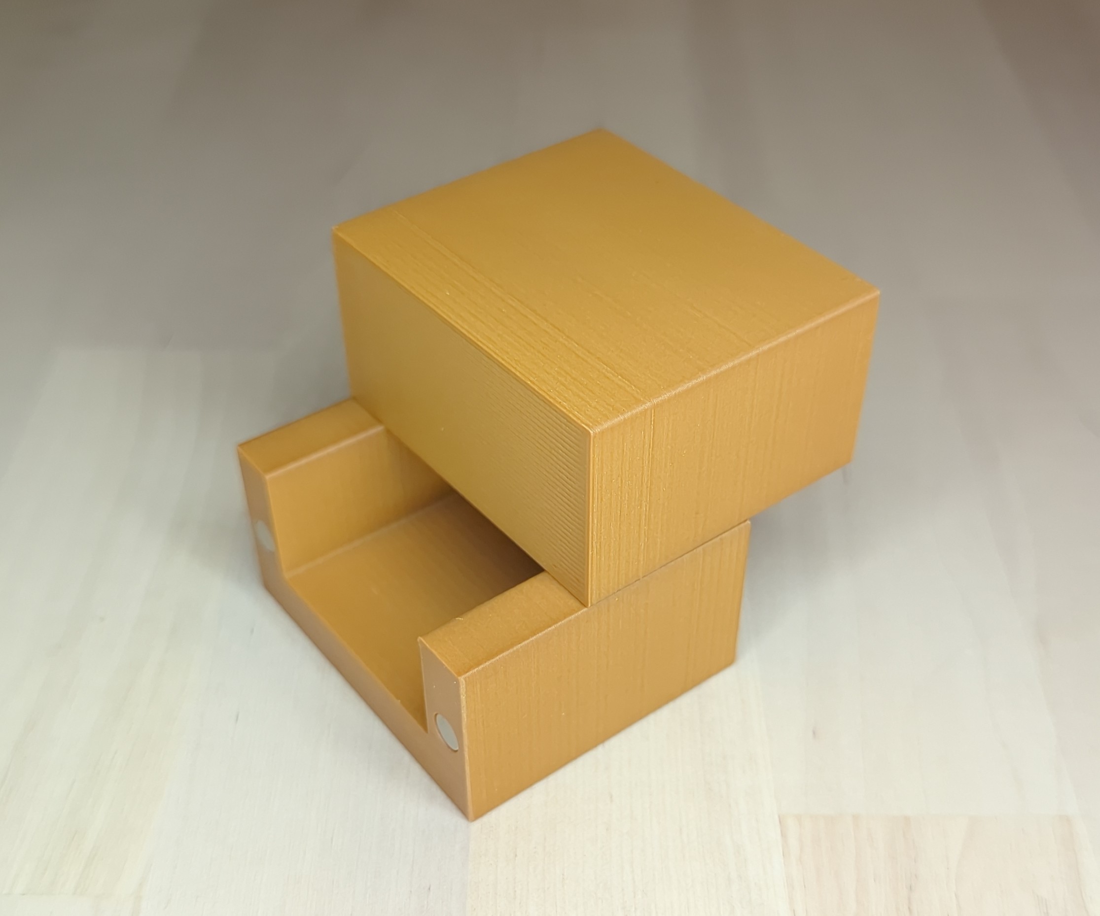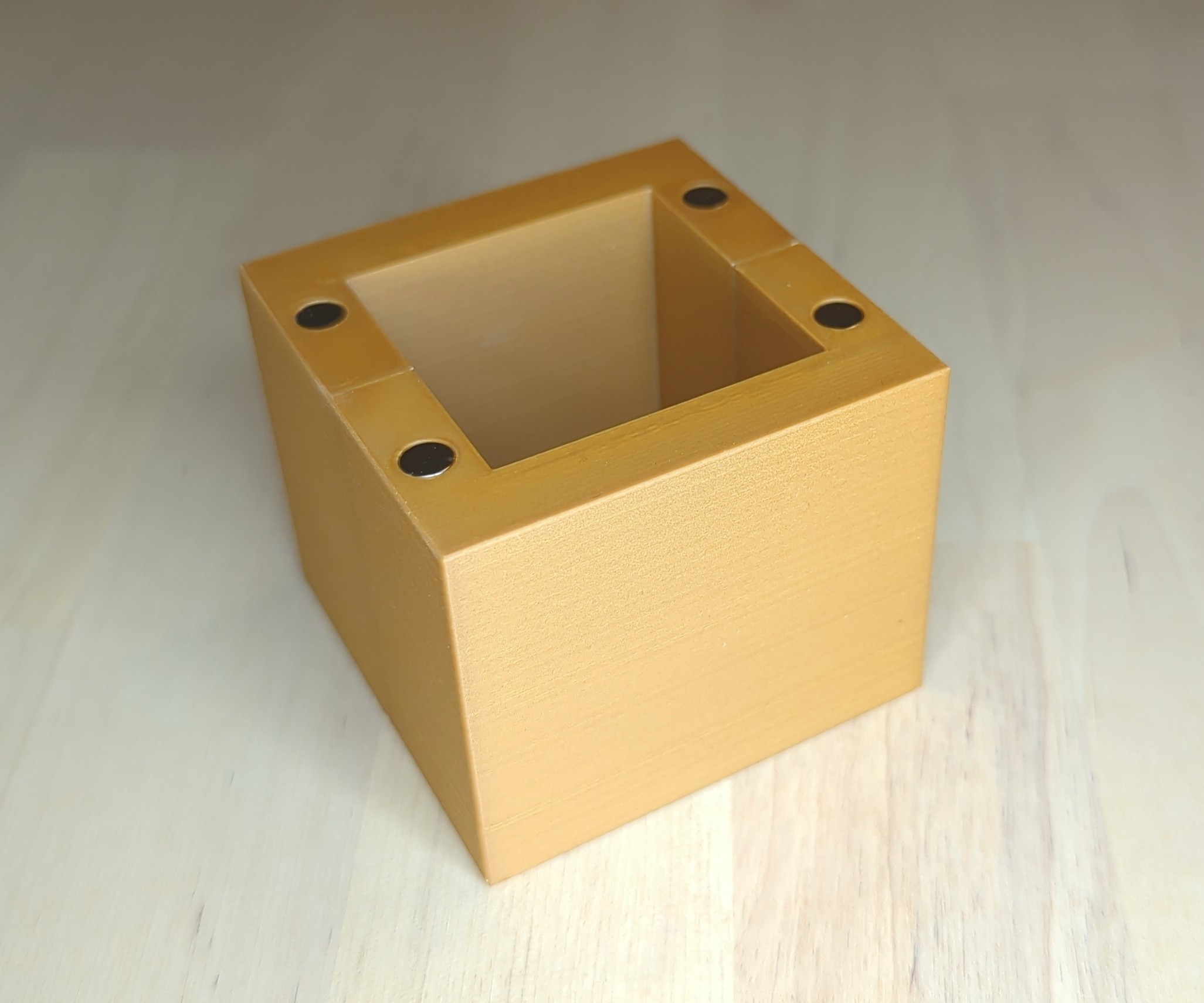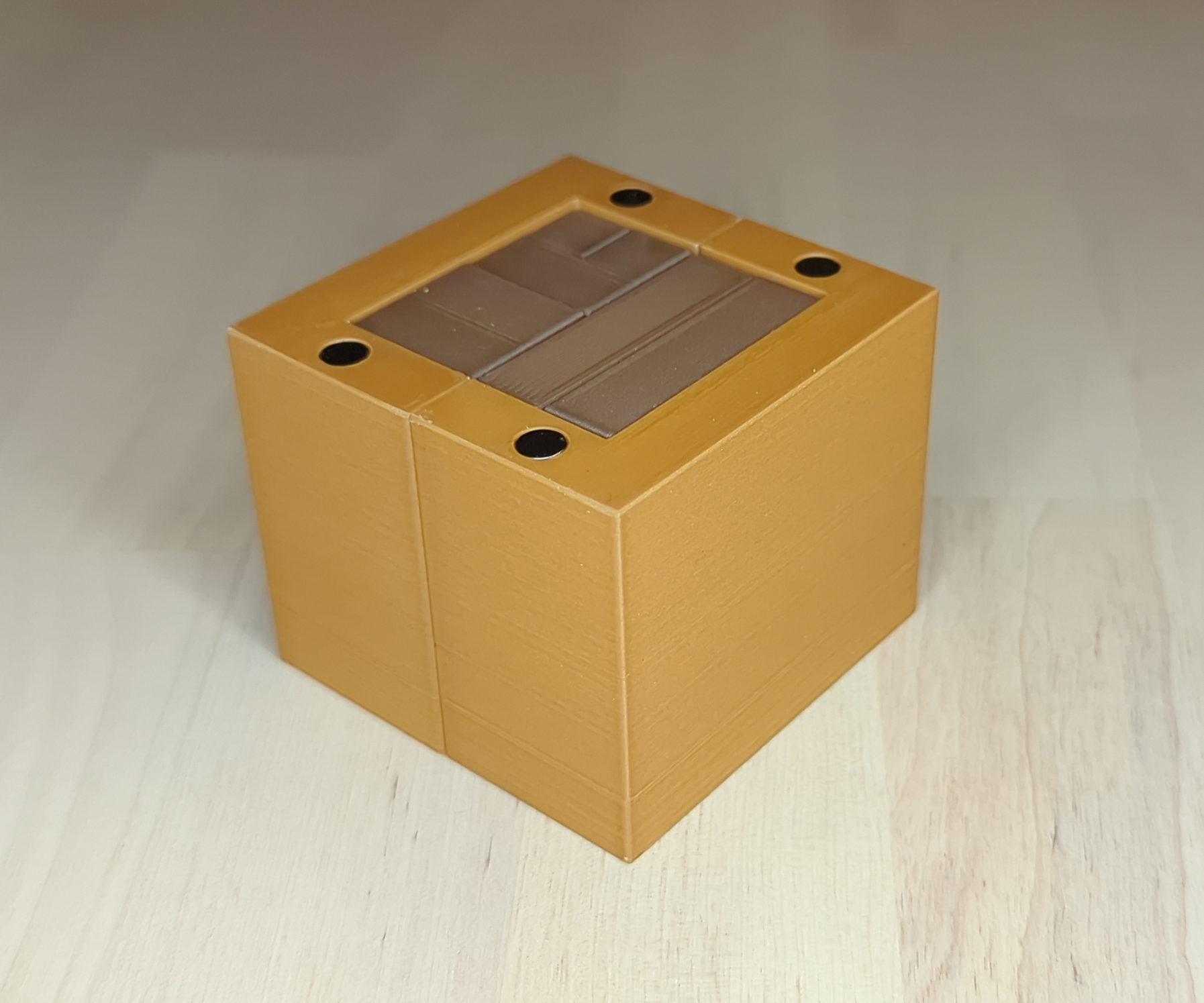 Broken Box is a brilliant puzzle. Its container isn't actually broken... it's divided into two parts and, thanks to a series of magnets, can be assembled in six different ways.