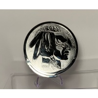 The Buffalo Nickel is based on a puzzle design by Oskar van Deventer and was made by George Miller for IPP 20 in Los Angeles is a large burr style puzzle where the object is to fit the two burr pieces into the main body of the coin to complete the border of the coin. It takes 9.5 moves to put the three pieces together into the solved state.
