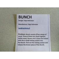 From the set of IPP31 exchange puzzles, this is "BUNCH", designed,manufactured and exchanged by Teijo Holmsten.