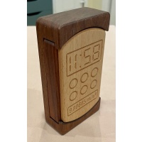 This is the Burner puzzle from Dedwood Crafts. The puzzle has been solved a couple times and is in pristine condition. As with all Dedwood puzzles, this one is absolutely beautiful! The craftsmanship is remarkable, and the solution is so tricky and engaging. Such a creative puzzle from Dee Dixon!