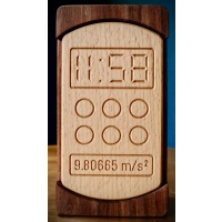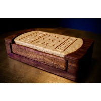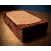 "Burner is the newest puzzle from DEDwood Crafts.  It resembles a modern cell phone and should provide a bit of a challenge. The goal is to remove the center portion. Once solved, the inner mechanisms will be revealed. This multi-step puzzle is part sequential discovery and part trick opening. It is made from beautiful granadillo and contrasting European beech. Its dimensions are 6" x 3" x 1.5"."