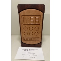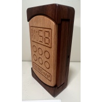 Burner is the newest puzzle from DEDwood Crafts. It resembles a modern cell phone and should provide a bit of a challenge. The goal is to remove the center portion. Once solved, the inner mechanisms will be revealed. This multi-step puzzle is part sequential discovery and part trick opening. It is made from beautiful granadillo and contrasting European beech. Its dimensions are 6" x 3" 1.5”.