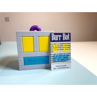 Burr Bot is combination of a burr style puzzle (with interlocking pieces that can be moved around) and a sequential discovery puzzle (where tools can be discovered to help you solve the puzzle).  He has been printed in Marble, Purple, Yellow, Gray, and Light Blue PLA.  He does also include a number of magnets.  Good Luck!