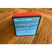 "Burr.exe ERROR" is a (mostly) standard 6 piece burr with a rather unique cage constaint. Its a level  9 with some pleasing and interesting moves. Not too tricky to take apart and very approachable to reassemble without computer assistance.”