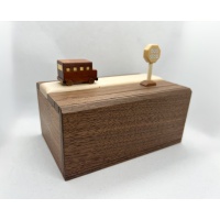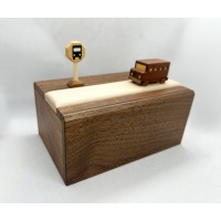 Bus Stop is a fantastic example of celebrated puzzle craftsman Osamu Kasho’s singular combination of playful Karakuri design coupled with delightful puzzling mechanic.  There’s a bus.  There’s a stop sign.  We all know what a vehicle does at a stop sign.  How does this play out here?  Figuring that out is the key to opening the box, and even with the solution being connected to the puzzle’s theme it can still take some time to figure out the key step.  And it’s beautiful, crafted from six different woods.  Bus Stop is a fun puzzle that looks great on display.  All original packing material is included