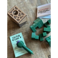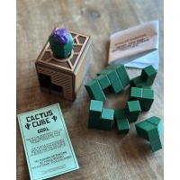 "This is a hybrid genre puzzle. 3D packing elements combine with “SD Lite” elements to create a unique challenge. The goal is to pack the box with the 3D cube pieces and then “plant” your cactus. I believe both parts of this challenge are formidable. No shaking, smacking, spinning, force or external tools needed. The puzzle is “Solved” when all pieces are inside the box and the cactus is fully planted flush with the top."