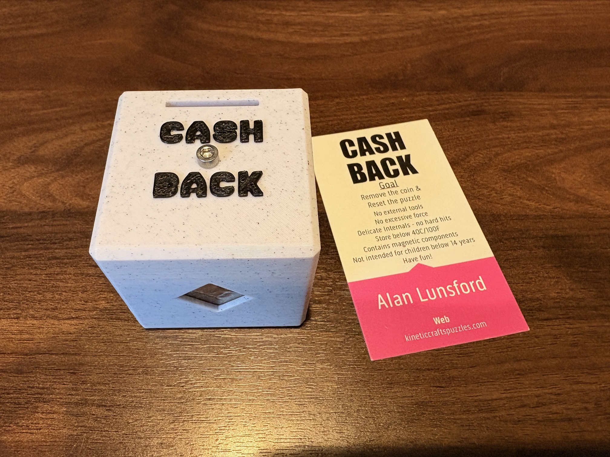 Puzzle is 3D printed in PLA and measures 52mm X 52mm X 52mm (~2.00in X 2.00in X 2.00in).