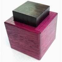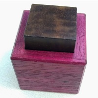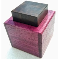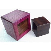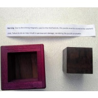 A cube and a box, so really two pieces? Looks like Simon Nightingale's original, but the mechanism is now different and unique. Gently solved and reset.