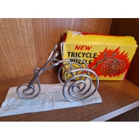 This is a very, very, rare puzzle by Chad Valley. This 1960s nickel plated tricycle puzzle is in excellent condition and comes with its original box and instructions.