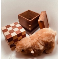 It seems hard to believe that it's been almost 20 years since I first made a small run of this clever packing puzzle design in 2006.  William has graciously allowed me to offer up another run as there were only a dozen copies made in 2006.The original metal version was William’s exchange puzzle at the IPP21 in Tokyo.This version is made using many wood varieties and includes a Stand.  The entire puzzle has been ‘triple buffed’ giving it a very nice sheen.Overall size is a little over 4...