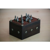 The chess box is a trick box by Jean Claude Constantin. On the top there are 11 metal chess pieces that can be moved. Can you manage to open the box? The chess box is a very elaborately manufactured trick box that is an absolute eye-catcher in every collection.