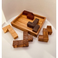 It seems hard to believe that it's been almost 20 years since I first made a small run of this clever packing puzzle design in 2006.  William has graciously allowed me to offer up another run as there were only a dozen copies made in 2006.The original metal version was William’s exchange puzzle at the IPP21 in Tokyo.This version is made using many wood varieties and includes a Stand.  The entire puzzle has been ‘triple buffed’ giving it a very nice sheen.Overall size is a little over 4...