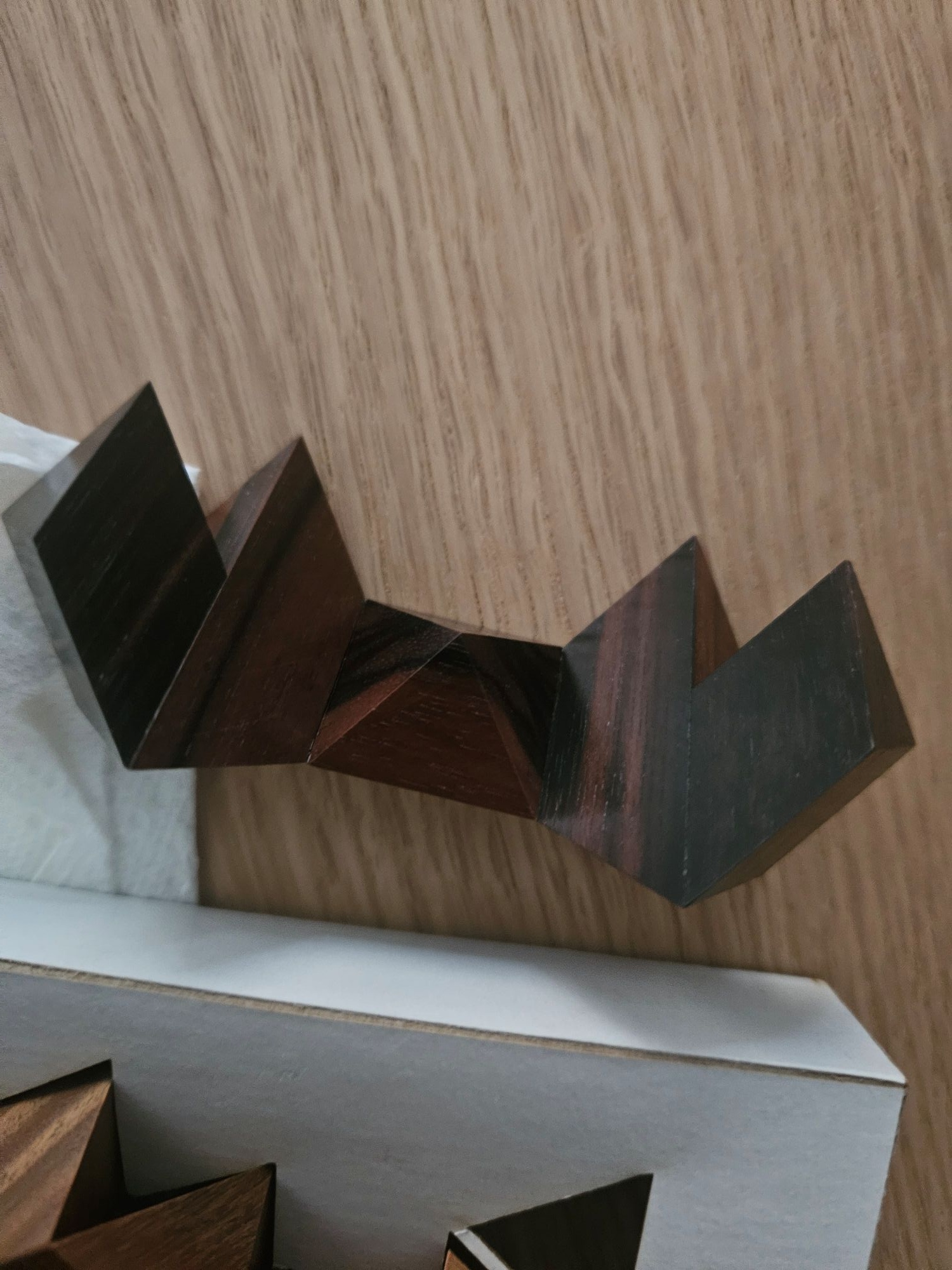 Very beautifullly crafted puzzle by Lee Krasnow. Satisfying puzzle to assemble.
