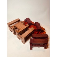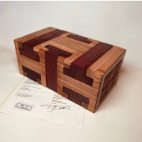 It seems hard to believe that it's been almost 20 years since I first made a small run of this clever packing puzzle design in 2006.  William has graciously allowed me to offer up another run as there were only a dozen copies made in 2006.The original metal version was William’s exchange puzzle at the IPP21 in Tokyo.This version is made using many wood varieties and includes a Stand.  The entire puzzle has been ‘triple buffed’ giving it a very nice sheen.Overall size is a little over 4...