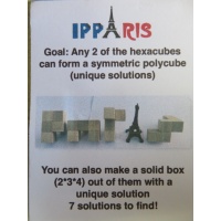 Make a symmetric polycube using any combination of 2 of the 4 hexacubes. 6 challenges wit a unique solution each. Also make a solid 2x3x4 block with unique solution.