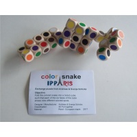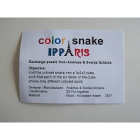 Fold the colored snake into a 3x3x3 cube, such that each of the six faces of the cube shows nine different colored spots.