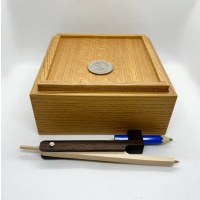 As with the best of Karakuris, this 2017 Karakuri Idea Contest winner beautifully integrates its theme with its solution.  It has two parts: a box containing a concealed compartment and a mechanical compass.  The box has a partial arc of a circle on top.  It’s both a puzzle to solve and a puzzle to consider the mechanic behind it.  All original packaging included.