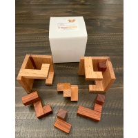 Two Goals: Pack the 4 pieces into the box with the odd piece visible and hidden from the holes.