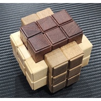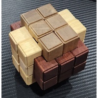 The puzzle uses three distinctly different colour woods to achieve a pleasing symmetry when completed.