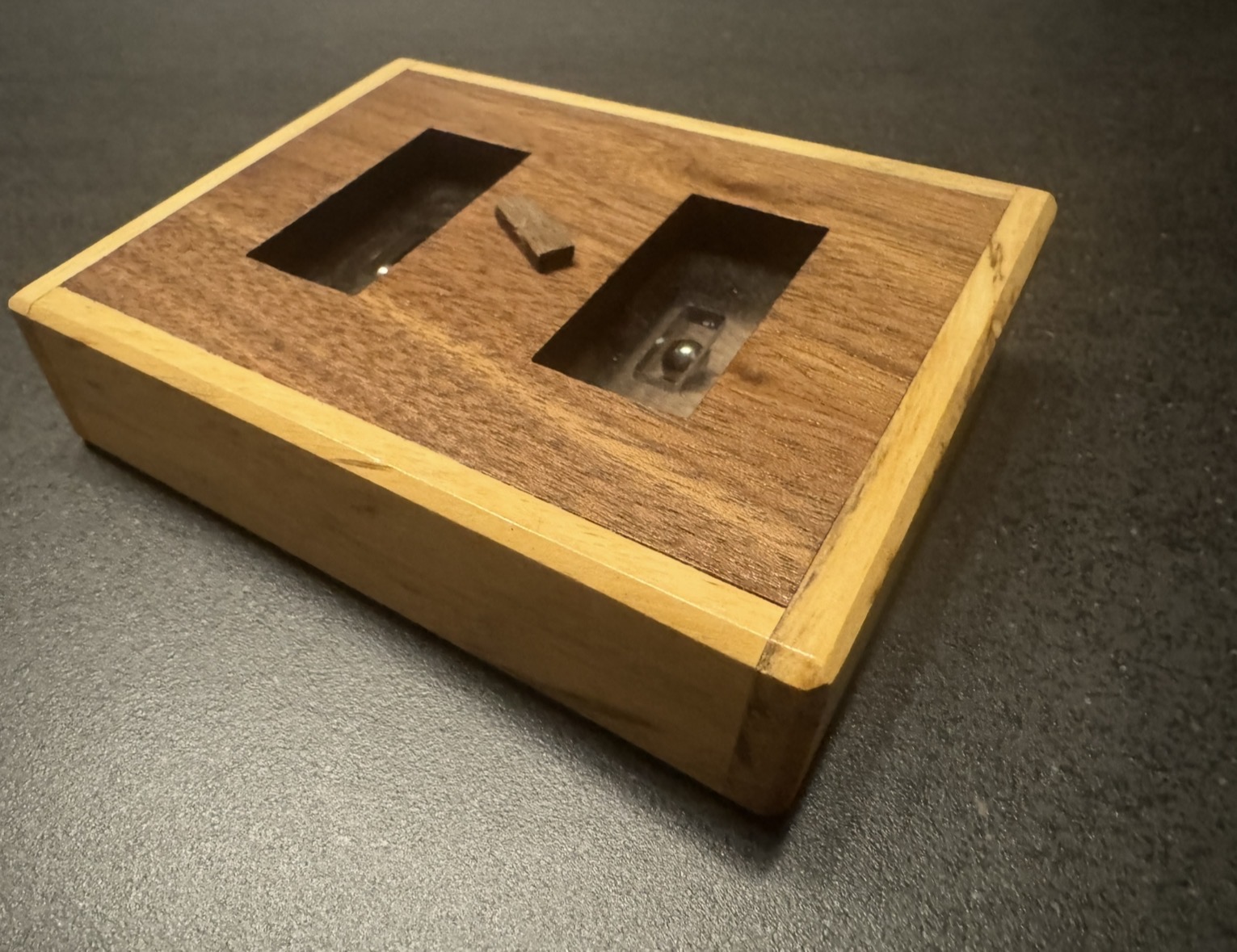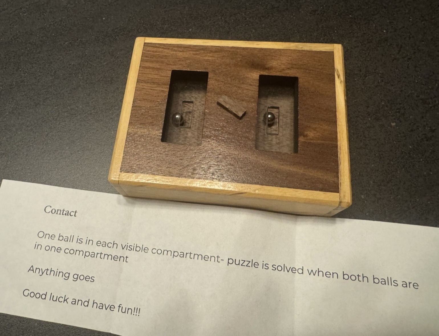 One ball is in each visible compartment- puzzle is solved when both balls are in one compartment | |