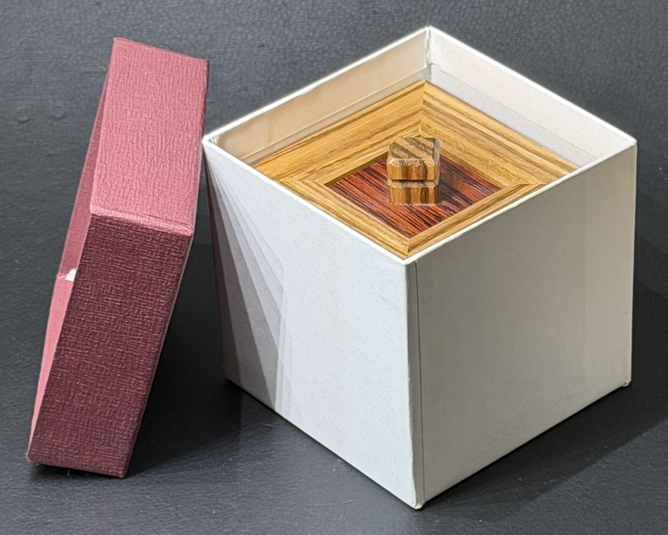 Puzzle and original packaging and inserts are included.  The solution is taped to the bottom of the inside of the box.  No peeking!Per the Karakuri website:Toaster (small)KCGITEMCH-13Created1/2022Size(box body)141×68×95mmSize(storage part)89×39×30mmMaterialcherry, shina, wendge, magnoliaFacebookTwitter共有The "Toaster" (P-32) created by Kamei in 1997 has been further improved.It is a work that successfully combines the movement of "I can't get the bread" and the mechanism of unlocking th...