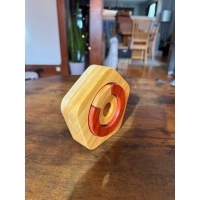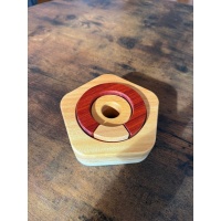 Crawl Space is a tricky puzzle with numerous steps, unexpected movements, and an ending that will hopefully put a smile on your face. It is made from Osage orange, padauk, maple, and purpleheart. Dimensions are 5.5" x 5.5" x 2".