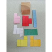 The cube measures 43 mm, the grid squares are 15x15 mm.
