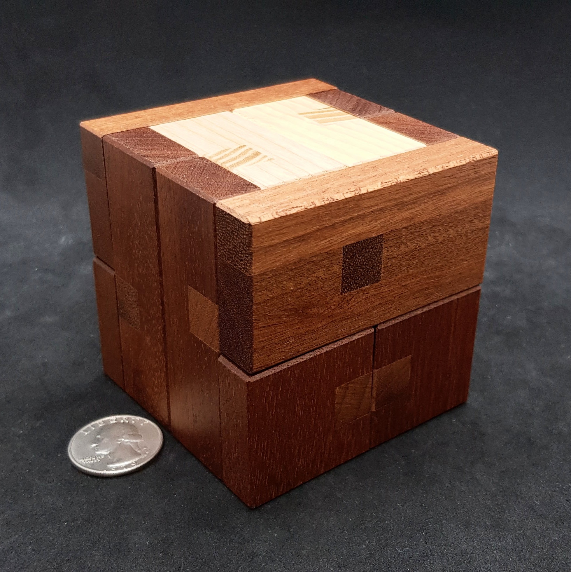 • description: a compact interlocking burr that builds into a cube. The solve is about finding the starting path. It’s a classic Jolly design: clean form, clever movement, and a cube assembly.