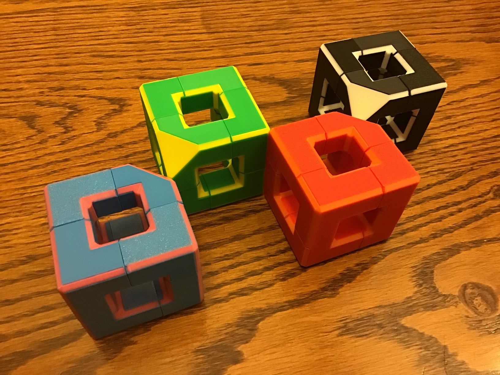 3 of the 4 cubits also have a second form which is not cube shaped but still connects all the magnets correctly. You can also combine all 4 cubits to make one big stable shape.
