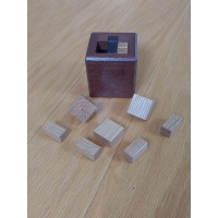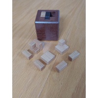 Cubyful is not the typical packing puzzle since there is a piece that slides up and down, left and right in the box, but can never leave the puzzle at all! So it acts as an obstacle for the solver and a helpful way to manipulate other pieces inside the box. Be careful to not let any pieces rotate! The puzzle has no rotations in it, and it took me a long time to retrieve the pieces after some unfortunate rotations! It's not hard to keep them from rotating, but I didn't know at first that they weren't meant to be permmissable moves.