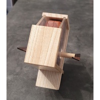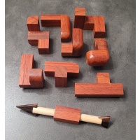 A very beautifull packing puzzle. The first step (easy) is to understand in which configuration the 8 pieces should be inserted in the frame; the second step (hard) is to find the sequence that allows you to pack them inside (35 moves). Once solved, the arrow piece can be inserted and remove at will.