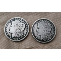 One is a normal Morgan Silver Dollar, and the other is 3 Morgan Silver Dollars in one.
