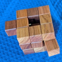 Eric writes "Daedalus by Gregory Benedetti is an utterly unique masterpiece of design. Brilliantly creative and brutally tricky, Daedalus hides its secrets well. The beautiful exterior gives no clue to the sheer pandemonium hiding inside. What appears to be a simple cube is an interlocking maze that continually changes its state with rotations, dead ends, and deception. Simple disassembly is a challenge; reassembly is genuinely an accomplishment.