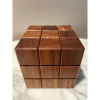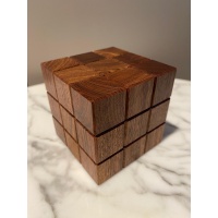 "Daedalus by Gregory Benedetti is an utterly unique masterpiece of design. Brilliantly creative and brutally tricky, Daedalus hides its secrets well. The beautiful exterior gives no clue to the sheer pandemonium hiding inside. What appears to be a simple cube is an interlocking maze that continually changes its state with rotations, dead ends, and deception. Simple disassembly is a challenge; reassembly is genuinely an accomplishment."