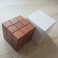 Daedalus by Gregory Benedetti is an utterly unique masterpiece of design. Brilliantly creative and brutally tricky, Daedalus hides its secrets well. The beautiful exterior gives no clue to the sheer pandemonium hiding inside. What appears to be a simple cube is an interlocking maze that continually changes its state with rotations, dead ends, and deception. Simple disassembly is a challenge; reassembly is genuinely an accomplishment.