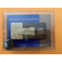 Danzig's Dilemma is Lagoon Games implementation of a classic "impossible dovetail" puzzle. The goal of the puzzle is to separate the two pieces, although it seems impossible that the two pieces could have ever been joined together with their dovetail configuration. I acquired this puzzle in London in 1999. Danzig's Dilemma measures 4 inches (10 cm) in length, and comes in its original packaging including its solution sheet.