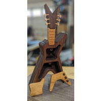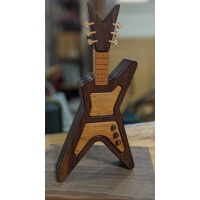 This is another craft item I made between puzzle builds. A two compartment Dean guitar box with flip up lids. Made from black walnut, granadillo, tigerwood and African striped mahogany. It's rather large at 14 in high, 7 in wide and 2 in thick. After so much interest on social media I thought I'd make another and offer it here. Release your inner rock star! My wife told me to stop daydreaming but that doesn't mean you have to. This item is not a puzzle. Thanks for looking.