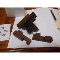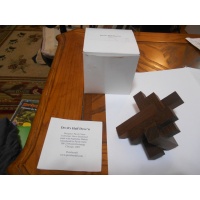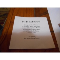 The name isn't a typo - the "Half Dove'n" refers to the fact that all 7 pieces have a male and female dovetail, all in different locations, of course. All you have to do is figure out how they go together (there are 4 solutions - none of them were easy for me). It was fun to solve. I will ship the puzzle assembled or disassembled, as the buyer wishes.