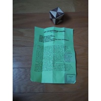 The green paper talks about the history of the puzzle which is shown in the photos. But on the other side of it, is the solution to how to assemble the puzzle. So don't worry if you struggle with solving the puzzle.