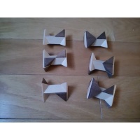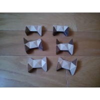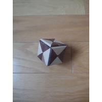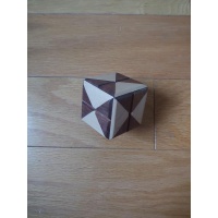 Diagonal Cube is a diabolical assembly puzzle where no matter how the pieces are put together, they don't seem to properly form a cube. As a coordinate motion puzzle, its disassembly can also prove tricky! The white and brown diamonds appear to help by color-coordinating where the pieces have to line up, but it's barely any help and can be misleading in fact.