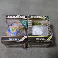 Difficult 3D pattern puzzle. The Dodeca Series by Hanayama Toys is a metal dodecahedron with twelve magnetic pentagonal tiles. The front and back of tiles are different. The aim is to place the tiles on the dodecahedron in order to form picture with one road.