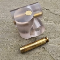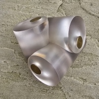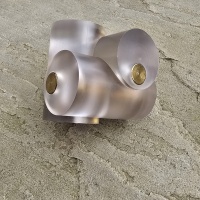 Three frosted acrylic pieces and three brass pieces interlock into the shape shown. Comes in a velvet pouch with original label. Solution not included.