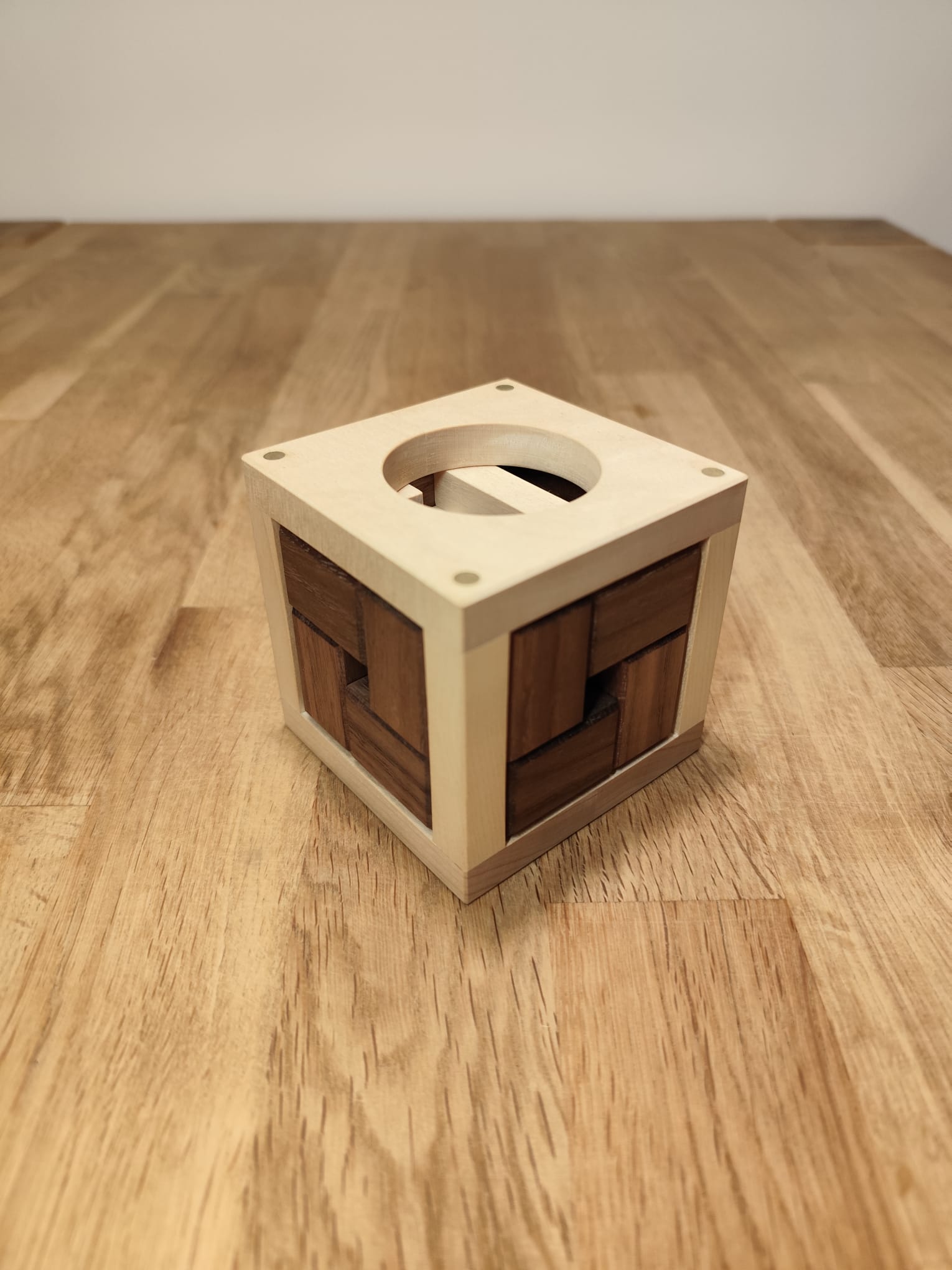 The Puzzle is in great condition and has good fit, not too loose, not too tight. It has no damage and was stored under controlled humidity conditions, no smoking or animal contact.I am the original buyer from Pelikan. Buyer to pay shipping, please wait until auction end to determine shipping costs together.Orignal Description from Pelikan:It measures 80 mm x 80 mm x 80 mm. We used Maple and Purpleheart in production of this puzzle. Difficulty: 29 (3.2.5.11.3.3.2) Kevin Sadler wrote about...