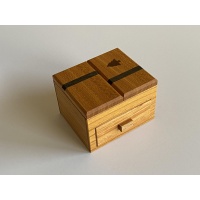"Drawer With A Tree" Puzzle is a new release by Hiroshi Iwahara. The crafter describes his work as "This item was designed with the same mechanism of “Box with a tree” (RF-14). The shape changed from Secret Box type to Drawer type. The internal space became bigger. You can unlock the drawer by sliding the two panels well. But, if you slide only one plate for the time being, it is already a failure. Also, use the “tree” on the top as well. The direction of the tree is important. If you succeed, the two lines connect to one line, the device inside moves, and the drawer will be unlocked.".